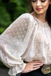 Lucrează cu o serie de profesioniști care se pricep să realizeze aceste minunății vestimentare, în mod manual. E o poveste cum rar întâlnești. E o experiență minunată să porți o ie făcută de oameni pasionați de munca lor, care își doresc să ducă tradiția mai departe. O ie care îți salvează evenimentul și te scoate în evidență.