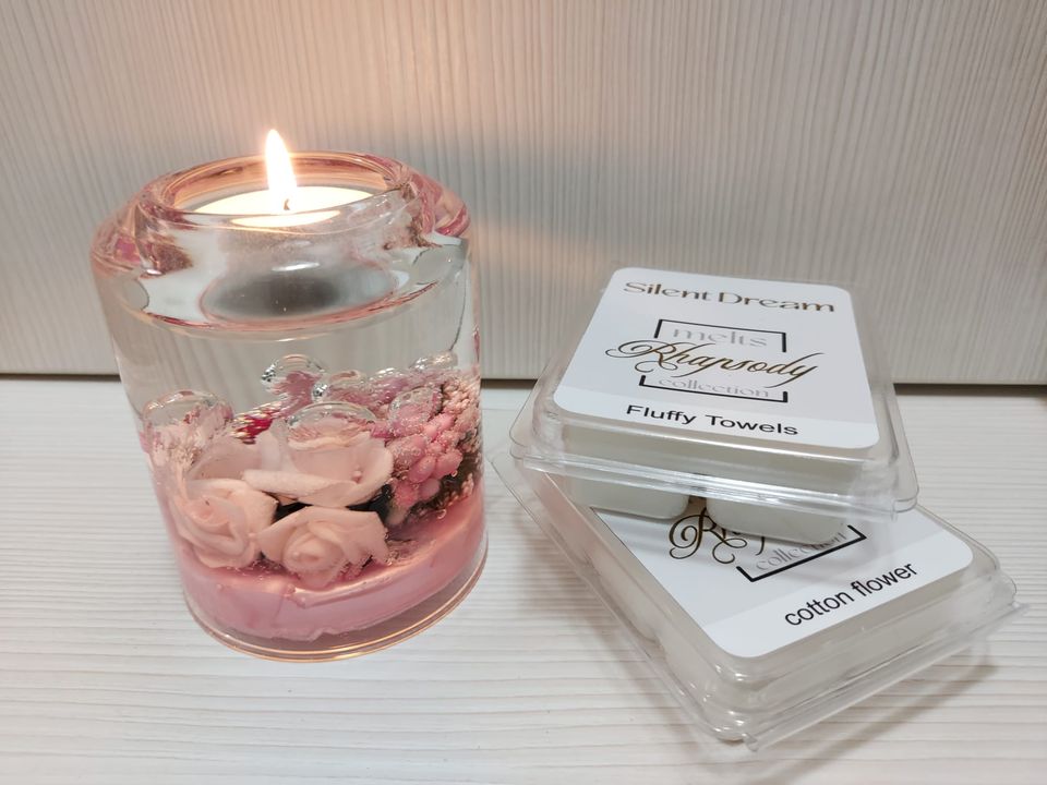 Acestea nu sunt neapărat înlocuitoare ale clasicei lumânări parfumate, ci mai degrabă un produs complementar, practic, simplu de utilizat, care îți lasă posibilitatea de a schimba aroma preferată mult mai des și mai ușor și la un preț mult mai îngăduitor. Astfel, pe lângă lumânările delicate, frumoase, cu fitil de lemn de cireș și turnate în vase de lut meșteșugite cu iscusință de olari din Horezu, s-au născut și melts-urile Silent Dream – o rapsodie de culori și de mirosuri îmbietoare, făcute cu voie bună și cu mult suflet” povestește Dragoș.